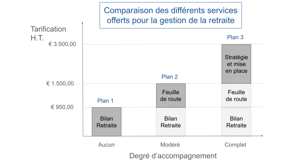 Même choisis à la carte, les services s’inscrivent dans une vision globale. Un bilan retraite peut éclairer une stratégie patrimoniale et l’expertise patrimoniale peut renforcer un départ à la retraite sécurisé.